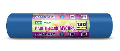 Мешки для мусора 120 л, 18 мкм, 10 шт. ПСД, синие