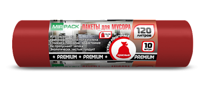 Мешки для мусора 120 л, 40 мкм, в рулоне 10 штук, ПВД, 2 слоя, 70x110 см, Премиум, красные