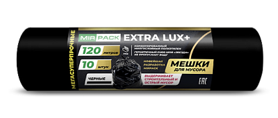 Мешки для мусора «EXTRA LUX+» 120 литров, 60 мкм, в рулоне 10 штук, ПВД 2 слоя, размер 70х110 см, черные