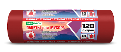 Мешки для мусора 120 л, 18 мкм, ПСД, 10 шт, красные