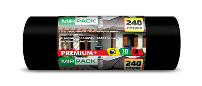 Мешки для мусора 240 л, 45 мкм, ПВД, в рулоне 10 штук, черные, 93x130 см, Премиум, Усиленные - 2 слоя