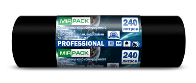 Мешки для мусора 240 л, 35 мкм, в рулоне 10 шт. ПВД, черные, 2 слоя, 93x130 см, Professional
