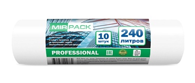 Мешки для мусора 240 литров, 35 мкм, ПВД, в рулоне 10 штук, 93х130 см, прозрачные 2 слоя, Professional