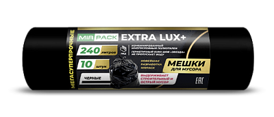 Мешки для мусора 240 л, 60 мкм, 10 шт, ПВД, 93х130 см, черные, EXTRA LUX