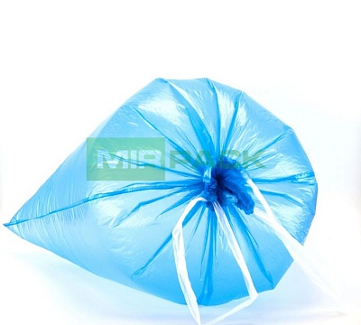 Пакеты для мусора с завязками 35л, 15 мкм, 15 шт, ПНД, синие, с ручками